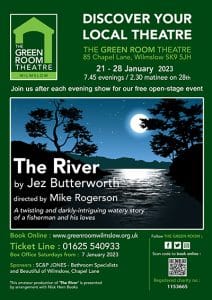 Comment from a first night audience member: “I have just watched an amazing piece of theatre. The audience were hooked , you could have heard a pin drop. Great production of The River, directed by Mike Rogerson. The three actors were enthralling, and the singing of Eilidh Pollard [ who also composed the song] was beautiful and haunting. Go along to Green Room , there are still some tickets left. Miss it, miss out!”